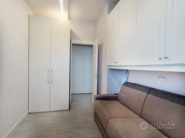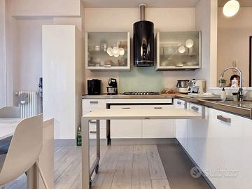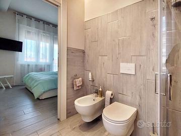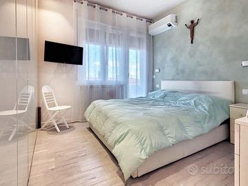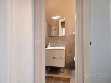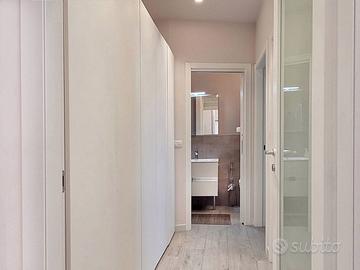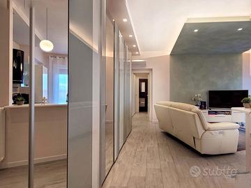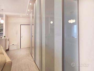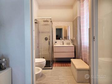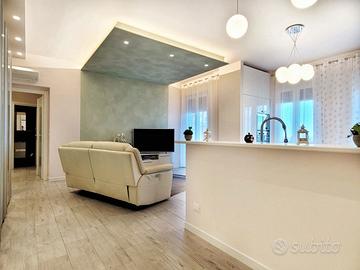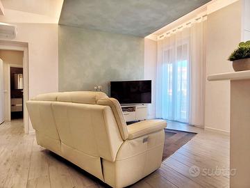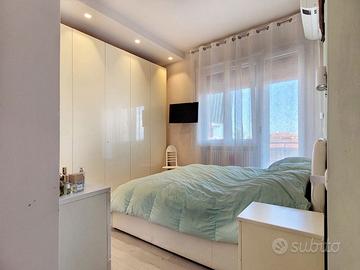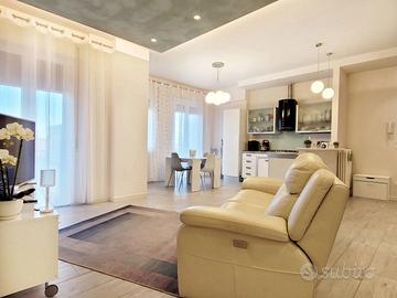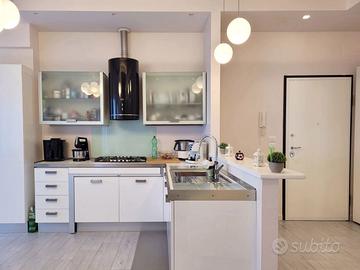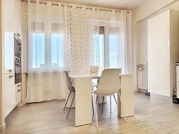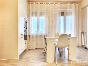 L'appartamento di circa 82mq, completamente ristrutturato nel 2023 in stile moderno, è organizzato in una zona giorno con ingresso su ampio e luminoso soggiorno con angolo cottura e doppio accesso al balcone con esposizione ad Est dal quale si intravede anche un suggestivo scorcio di mare. Il balcone di circa 15 mq è abitabile e dotato di vaschetta e allaccio per la lavatrice oltre che di tende da sole lati Est e Nord.