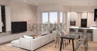 L'appartamento è composto da un ingresso, soggiorno spazioso e cucina a vista, per un'area living di circa 40 mq. Dispone di tre comode camere da letto, due bagni finestrati e una pratica lavanderia. Completa la proprietà un garage di 18 mq e un posto auto esclusivo.