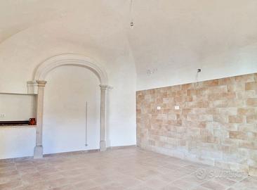 Al portone d'ingresso del piano terra ci accoglie un caratteristico chiostro con scala in pietra: da un lato un ampio locale tecnico e un comodo bagno di servizio finestrato, dall'altro un deposito di circa 18 mq.