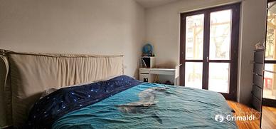 L'appartamento si compone di un luminoso soggiorno con cucina a vista, che si affaccia su un ampio patio di circa 10 mq e un giardino privato di 50 mq, ideale per momenti di relax all'aria aperta. La zona notte è composta da due camere da letto, una singola e una matrimoniale, entrambe con parquet in tutta la casa, e due bagni, uno con doccia e uno con vasca.