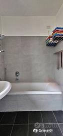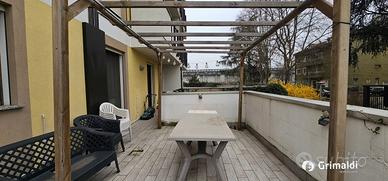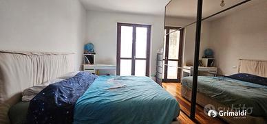L'appartamento è composto da ingresso nel soggiorno con cucina open-space da cui si accede allo spazioso patio di circa 10 mq che affaccia sul giardino privato di 50 mq. Dalla zona giorno si accede alla zona notte composta da due camere da letto, una singola ed una matrimoniale e doppi servizi, un bagno cieco con doccia e uno finestrato con vasca. completa la proprietà la cantina.