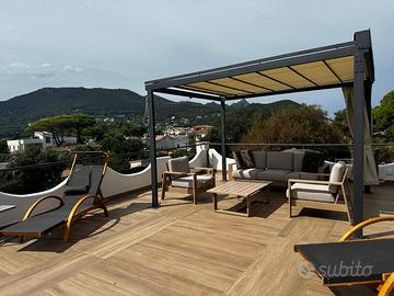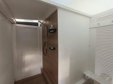 All'immobile si ha accesso dal piano terra in cui troviamo una piccola corte di proprietà con zona living, doccia esterna e spogliatoio.