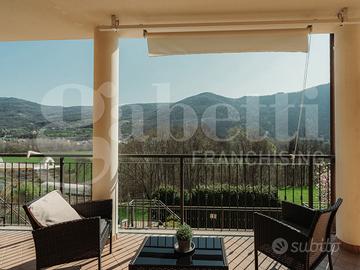 All'esterno, un dettaglio che fa la differenza: un terrazzo coperto di 40 mq calpestabili, un vero e proprio prolungamento della casa. La copertura lo rende fruibile anche nelle mezze stagioni, mentre la sinergia con il bagno-lavanderia permette di svolgere comodamente le attività domestiche, come lavare o stirare, godendo di una vista naturale che abbraccia il profilo di Villar a