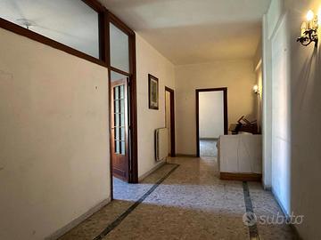 Via Margherita di Savoia proponiamo in vendita una spaziosa abitazione con doppio ingresso, perfetta per famiglie alla ricerca di ampi spazi e comfort. L'ingresso è ampio e accogliente, sulla sinistra si trova una camera da poter adibire ad eventuale studio, mentre di fronte si apre un elegante salone doppio, dotato di un 'ampia balconata che circonda l'intera casa, offrendo una vista panoramica e luminosa in tutte le stanze. Proseguendo lungo un comodo corridoio, sulla sinistra si trova un pratico bagno di servizio, la cucina ed il secondo ingresso, mentre sulla destra si apre una camera, seguita da una cameretta. L'abitazione offre altre due camere spaziose con affaccio sul balcone. In fondo al corridoio si trova una cameretta aggiuntiva ed il bagno padronale. Quest' immobile offre ampie potenzialità, è perfetto per chi desidera spazio e funzionalità; per ampie famiglie e per chi ha nel proprio nucleo familiare genitori anziani e vuole donargli privacy con spazi autonomi. Inoltre è interessante per chi ha bisogno di una casa dove poter unire lavoro e famiglia, infatti grazie alla sua ampiezza è possibile realizzare una zona studio. Infine è interessante come studio medico, laboratori e uffici di rappresentanza.