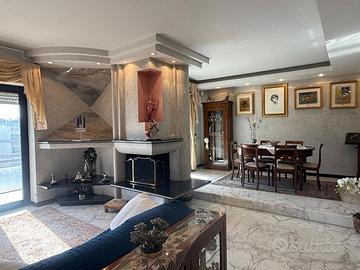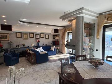 Esclusivo Attico su Due Livelli con Terrazzo Panoramico - Via Manzoni, San Giorgio a Cremano La Zona: Nel cuore di San Giorgio a Cremano, nella rinomata e servitissima Via Manzoni, La Gabetti di San Giorgio a Cremano, propone in vendita una soluzione abitativa di rara bellezza situata all'interno di un parco signorile con servizio di guardiania H24. La posizione è il vero valore aggiunto: vivere qui significa avere a pochi passi le migliori infrastrutture scolastiche della città. La zona è inoltre un hub per lo sport e il tempo libero: il celebre Palaveliero è a brevissima distanza, così come negozi, supermercati e parchi. L'appartamento, posto al 5° e 6° piano e collegato internamente da un'elegante scala, si sviluppa su una superficie di circa 165 mq interni più uno straordinario spazio esterno di 110 mq. Distribuzione degli Spazi: * Primo Livello 125 mq (5° Piano): L'ingresso conduce a un ampio e luminoso soggiorno doppio con camino e balcone. La zona notte comprende un generoso disimpegno, uno studio ideale per lo smart working, due ampie camere da letto e due bagni rifiniti. * Secondo Livello (6° Piano): Salendo, veniamo accolti da una spettacolare zona living di circa 45 mq composta da un'ampia cucina-soggiorno, anch'essa dotata di secondo camino, perfetta per l'atmosfera invernale. * Il Terrazzo: Il vero gioiello della casa è l'ampio terrazzo a livello di 105 mq, interamente attrezzato e con vista panoramica, ideale per momenti all'aperto e attimi di relax assoluto. Pertinenze e Comfort: La proprietà è completa di ogni comodità: * Posto auto coperto condominiale. * Posti auto condominiali all'interno del parco. * Comoda cantinola di proprietà. * Sicurezza garantita h24. Un'opportunità unica per chi cerca ampi spazi, e una vista mozzafiato nel centro cittadino.