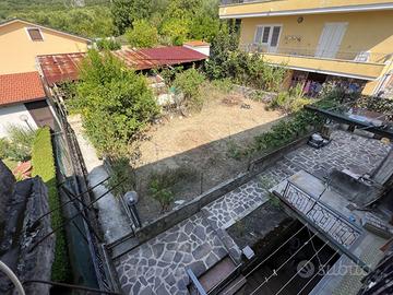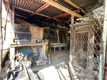 Il giardino si presenta parzialmente pavimentato e parzialmente attrezzato a verde con tettoia accessoriata con forno a legna.