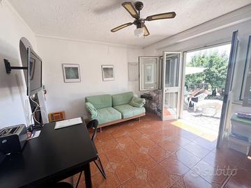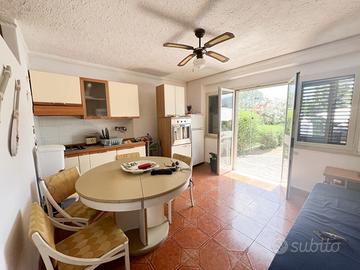 Le due unità abitative, contigue al piano terra, dispongono di un giardino comune antistante e retrostante di complessivi 200 mq. perfetto per i momenti di relax e convivialità, godendo di una gradevole vista mare.