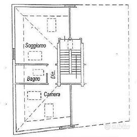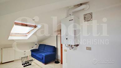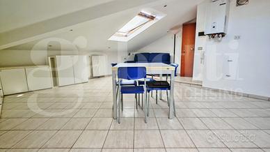 L'appartamento è composto da soggiorno con angolo cottura, una camera e un bagno, ed è dotato di riscaldamento autonomo e aria condizionata, con caldaia nuova e finestre velux. Completa la proprietà un posto auto scoperto.