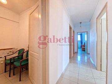 L'appartamento, dotato di doppio ingresso sul vano scale condominiale, internamente si compone di un ampio soggiorno di 40mq con angolo cottura ed accesso diretto al terrazzo, disimpegno notte, tre grandi camere matrimoniali (di cui due con accesso al terrazzo), doppi servizi (uno con finestra) e due comodi ripostigli.