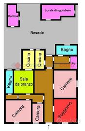 Pur se da ammodernare, ha il pregio di poter essere ridisegnata per una distribuzione degli spazi più razionale e congeniale e può essere ideale anche come soluzione genitori/figli sfruttando il doppio ingresso di cui gode l'immobile.