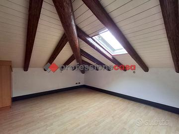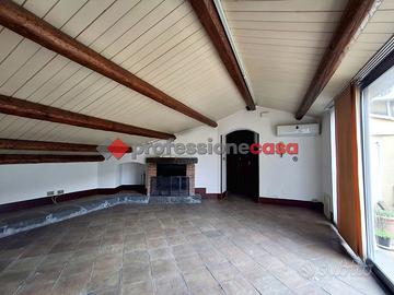 Professionecasa Paesi Etnei propone in vendita a San Gregorio di Catania, in posizione centralissima esattamente di fronte alla Piazza Regina Margherita, un affascinante appartamento mansardato situato al terzo ed ultimo piano. L'immobile, caratterizzato da tetti mansardati con travi a vista, si sviluppa su una superficie di 100 mq, con un ingresso su un piccolo corridoio con scale che disimpegna le due zone della casa: sul lato destro si sviluppa la zona giorno, composta da un accogliente salone con camino, una cucina abitabile collegata, una pratica lavanderia con ripostiglio e un grazioso e riservato terrazzino esterno; il lato sinistro è invece dedicato alla zona notte, che comprende un'ampia camera di passaggio con ripostiglio, due ulteriori camere da letto e un bagno padronale con vasca. L'appartamento è termoautonomo, ben rifinito e ubicato in zona strategica con tutti i principali servizi a portata di mano. APE in fase di rilascio.