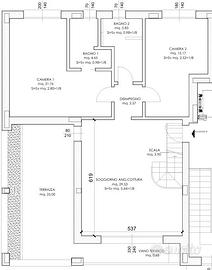 Appartamento su due livelli: al primo piano ingresso su sala con cucina a vista e accesso alla terrazza loggiata, disimpegno, due camere matrimoniali e due bagni. Al piano superiore ampio ambiente abitabile con accesso alla seconda terrazza.