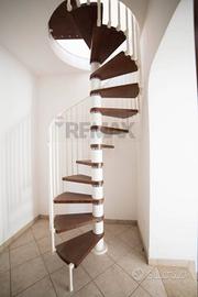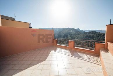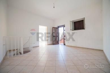 Al piano terra si trovano lingresso indipendente e il garage. Salendo al primo piano si accede a un ampio soggiorno con cucina, entrambi affacciati sulla panoramica Via Cappuccini, che garantisce grande luminosità agli ambienti. Sullo stesso livello sono presenti un bagno con piatto doccia, il vano scala con scala a chiocciola e un balcone angolare. Il secondo piano ospita due spaziosi vani, uno dei quali con accesso diretto a una terrazza panoramica prospiciente Via Cappuccini, ideale per momenti di relax allaperto.