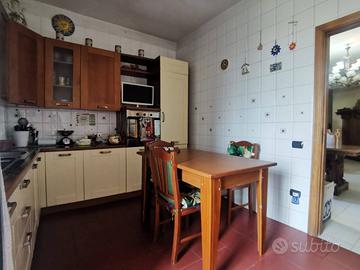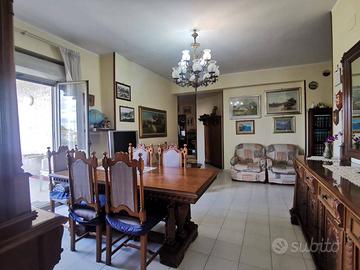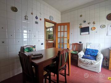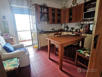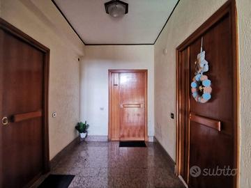 L'immobile si presenta in buone condizioni ed è così composto: ampia zona giorno composta da un accogliente salone e cucina abitabile adiacente, disimpegno con zona notte composta da due camere da letto spaziose e due bagni, di cui uno con vasca e l'altro con doccia. L'appartamento è circondato da un balcone perimetrale comodo e attrezzabile che affaccia su un'ampia zona libera e ariosa. L'appartamento si trova al secondo piano di un edificio di tre piani, non servito da ascensore. Completa la Proprietà un Box Auto e una Cantinola.