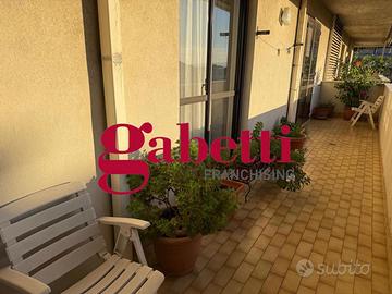 L'immobile, con una metratura interna di circa 170 mq., risulta così composto: soggiorno triplo con camino (pertanto con possibilità di realizzare ulteriori camere), cucina abitabile, due camere da letto, un ampio bagno, ripostiglio e doppia balconata con affaccio Est-Ovest.