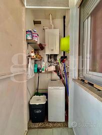 L'appartamento è composto da: ingresso, soggiorno doppio con aria condizionata, cucina abitabile con balcone, ripostiglio e veneziane, disimpegno con aria condizionata che porta alla zona notte, bagno finestrato con box doccia, camera matrimoniale e cameretta con secondo balcone.