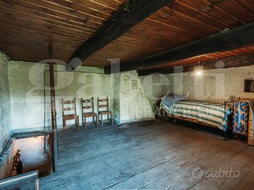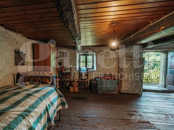 Al primo piano si trova la parte abitativa principale: cucina, due camere e bagno. Gli ambienti non sono ampi in altezza, ma risultano raccolti e ben proporzionati: i soffitti più bassi rispetto agli standard moderni aiutano a mantenere il calore in inverno e il fresco d'estate, come da tradizione contadina.