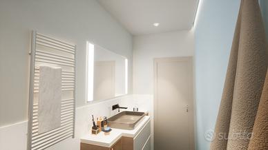 Il sistema di riscaldamento a pavimento alimentato da panneli fotovoltaici, infissi a taglio termico, coibentazione della muratura esterna ed elementi di domotica garantiranno bassi consumi e alte prestazioni alla proprietà.
