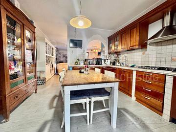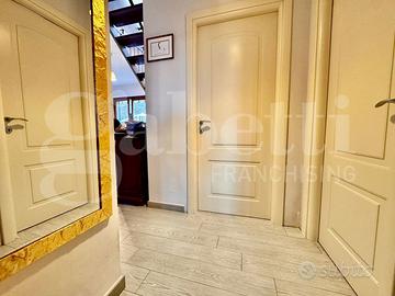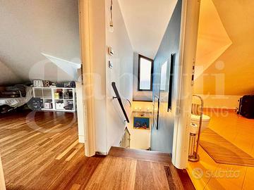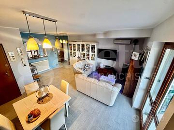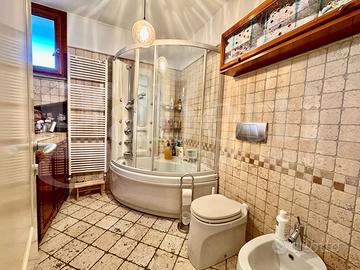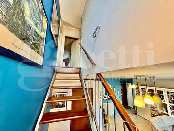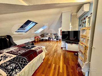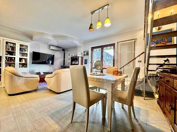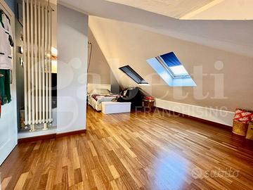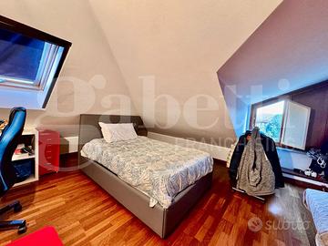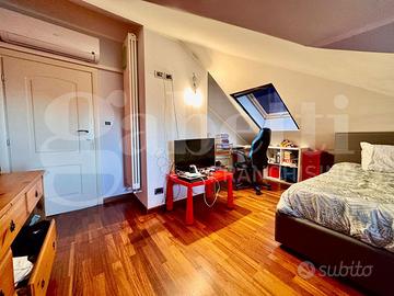 Zona residenziale e tranquilla, proponiamo grazioso appartamento libero 4 lati in villa trifamigliare sito al piano primo ed ultimo di ingresso, soggiorno con uscita su terrazzo, cucina abitabile con uscita su ampio balcone, disimpegno e due camere (di cui una con uscita su balcone ed una adibita attualmente a lavanderia). Una comoda scala in legno conduce al piano superiore dove troviamo una mansarda abitabile di disimpegno, due camere e servizio. Al piano interrato n. 2 cantine ed ampio box doppio (o triplo per tre utilitarie) Porzione di terreno di c.a 300 mq. con barbecue ideale per feste, ritrovi, relax e grigliate. L'appartamento risulta totalmente ristrutturato nel 2009 oltre che panoramico e molto luminoso. Condizionatori con pompa di calore e tende estive. DA VEDERE!!
