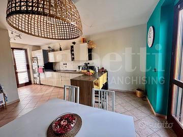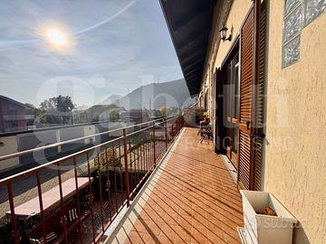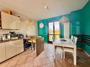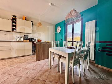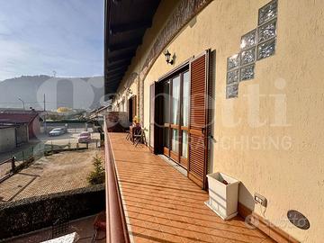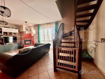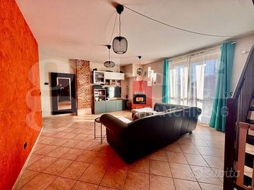 Via Pinerolo-Susa, in graziosissimo complesso del 2010 proponiamo appartamento libero tre lati con ingresso indipendente sito al piano primo di ingresso, salone con camino a pellet, cucina abitabile, servizio e due ampi balconi panoramici. Mansarda con l'abitabilità e tetto in legno a vista di due ampie camere, servizio e cabina armadi (volendo trasformabile in terza camera). Al piano cortile box doppio per due utilitarie e n. 2 posti auto di proprietà scoperti oltre che porzione di orto di c.a 40 mq.. Cantina. Ottime finiture interne. Pannelli solari. ASSOLUTAMENTE DA VEDERE!