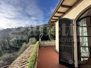 Proponiamo in affitto splendido bilocale di ampia metratura in villa, immerso nel verde e nella tranquillità, a soli 10 minuti di auto dal centro di Sanremo.