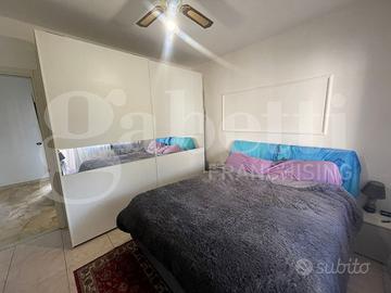 Proponiamo in vendita un ampio quadrilocale con annesso giardino, situato al primo piano rialzato di una palazzina signorile dotata di ascensore. L'appartamento è composto da: ingresso, spazioso soggiorno con accesso al terrazzo, cucinino, tre camere da letto - di cui una con portafinestra che conduce al terrazzo - un bagno finestrato con box doccia e un secondo locale adibito a bagno di servizio e infine un ripostiglio. La proprietà include un giardino privato, di 140mq accessibile mediante scala presente sul terrazzo, perfetto per trascorrere momenti di relax all'aperto e un box auto compreso nel prezzo. Il riscaldamento è centralizzato con termovalvole, mentre l'acqua calda è prodotta da caldaia. Le spese condominiali ammontano a circa € 1.200 annue (comprese di riscaldamento e acqua). È presente il servizio di portineria. L'immobile si trova in una zona residenziale tranquilla, a poca distanza dalle spiagge e del supermercato Carrefour. Per informazioni e per visitare questa interessante proposta immobiliare si prega telefonare al Geom. Borla Domenico -