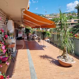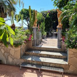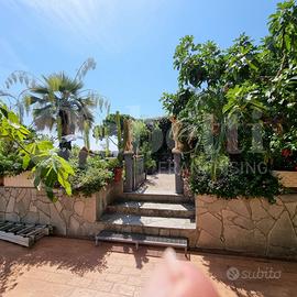 In contesto residenziale molto tranquillo e ricco di aree verdi, a circa 1 km. dal mare, proponiamo in vendita un quadrilocale semi indipendente, completamente ristrutturato, arricchito da ampio terrazzo e giardino con vista mare, sito al piano primo di una graziosa palazzina di tre piani di soli nove unità immobiliari. La proprietà, alla quale si può accedere tramite ben tre ingressi, è composta da un signorile pentavani semi indipendente della superficie lorda di 137 mq. corredato da 200 mq. di terrazzo e 500 mq di giardino recintato arricchito da prato verde, splendidi fiori, palme, alberi da frutta e prezioso orticello dove è possibile coltivare la "passione dell'orto, munito di ripostiglio per deporre gli attrezzi. L'accesso all'appartamento avviene sull'ingresso che si apre sull'ampio soggiorno e la cucina abitabile arredata in modo signorile e funzionale; entrambi i vani si immettono tramite porta finestra sull'ampia corte esterna. Si prosegue poi su un corridoio che ci accompagna alla zona notte composta da tre camere da letto matrimoniali, di cui due hanno accesso diretto sulla grande corte esterna, e due locali bagno finestrati; un bagno principale dotato di cabina doccia e un bagno di servizio munito di vasca. Quasi tutti i vani dell'immobile si affacciano sulla considerevole corte esterna che rappresenta sicuramente uno dei punti di forza di questo appartamento con vista mare; l'ampia metratura dello spazio esterno lo rende un ambiente totalmente vivibile per quasi tutto l'anno in considerazione del mite clima che caratterizza la zona; lo spazioso terrazzo è ideale per trascorrervi ore in perfetto relax godendo l'aria salubre e il radioso sole della famosa città di Sanremo. Completano la proprietà una cantina e un posto auto coperto per autovetture di piccole dimensioni, che libera dallo stress di trovare un parcheggio, entrambi compresi nel prezzo di vendita. La proposta è adatta ad una spaziosa prima casa nel quartiere L