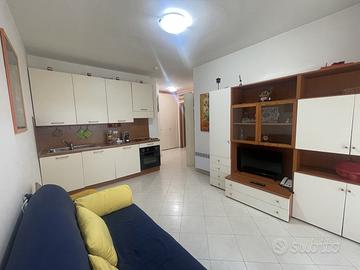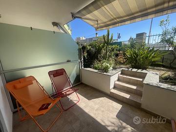 Ampio monolocale di 28 metri quadrati, arricchito da un giardino privato di 8 metri quadrati. L'ingresso è dotato di un pratico letto a castello a scomparsa, ideale per ottimizzare gli spazi e garantire la massima funzionalità. La zona giorno presenta un'ampia sala spaziosa, illuminata e accogliente, che ospita un comodo divano letto e una cucina a vista, perfettamente attrezzata per ogni necessità.