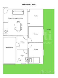 Gli appartamenti sono composti da ingresso su soggiorno con angolo cottura, disimpegno, due ampie camere da letto, bagno, portico, autorimessa e giardino privato.