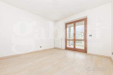 L'appartamento è composto da due locali che affacciano su grande terrazzo e un bagno, ideale per una coppia o una piccola famiglia. Dotato di videocitofono e impianto di riscaldamento autonomo, garantisce comfort e sicurezza. Gli infissi in legno con doppio vetro e le persiane in legno assicurano un'ottima coibentazione termica e acustica.