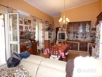Siclia, Palermo, SANTA FLAVIA - Via Bellacera, a 3km dallo svincolo autostradale, villetta di recente costruzione, indipendente, immersa nel verde con ampio giardino di 1300 mq circa pianeggiante su strada, piantumato con alberi di ulivo, interamente recintato. La residenza è composta da ampio portico terrazzo con vista giardino, salone-soggiorno con area cucina in muratura, wc doccia con lavanderia, ripostiglio con soppalco finestrato, disimpegno per zona notte con ampia camera da letto, altro wc doccia, cameretta, patio esterno. Ottimo stato. Cod. Rif. V/5
