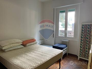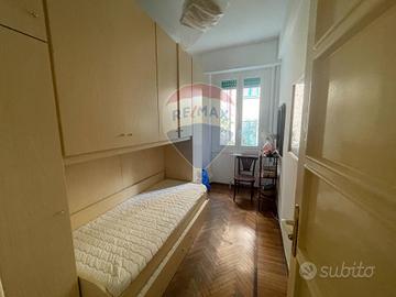 La zona notte comprende una spaziosa camera matrimoniale appena rinnovata nell'arredo (con possibilità di aggiungere un lettino), un comodo studio e due bagni finestrati, uno con vasca e laltro con doccia. Completano la proprietà due pratici ripostigli e un balcone di servizio per la zona lavanderia.