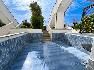 All'esterno, un terrazzo a livello offre uno spazio ideale per rilassarsi all'aria aperta o godersi una colazione al sole. Inoltre, la casa è dotata di climatizzatore per garantire il massimo comfort anche durante le giornate più calde dell'estate.