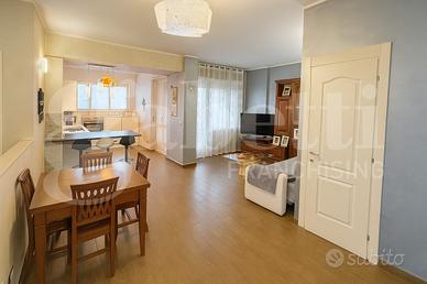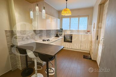 L'abitazione si compone di un ampio e luminoso soggiorno, ideale per i momenti in famiglia, con una moderna cucina a vista che offre accesso diretto al terrazzo. La zona notte include due camere da letto, di cui la matrimoniale con balcone privato, oltre a un bagno e un comodo ripostiglio.