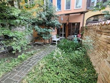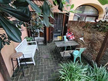Via Santo Stefano di fronte al portico del Baraccano (riconosciuto patrimonio Unesco), bilocale di 70 mq con suggestivo giardino privato di 55 mq sul quale affaccia l'ampia zona giorno.