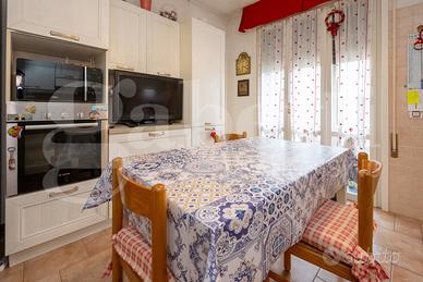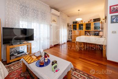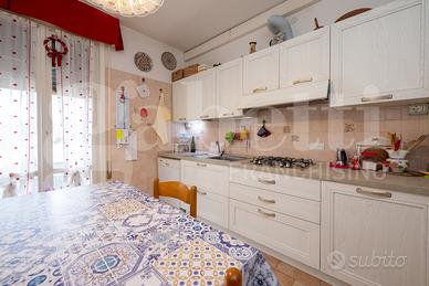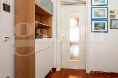 Entrando nella soluzione veniamo accolti da un ingresso dove è presente un ripostiglio provvisto di attacchi per la lavatrice; proseguendo all'interno dell'immobile troviamo l'ampia e luminosa zona living con terrazzo dedicato, l'importante metratura del soggiorno è stata ricavata eliminando la parete di una camera singola originariamente presente come terza camera, facilmente ripristinabile; la zona giorno si completa con una cucina separata provvista anch'essa di terrazzo.