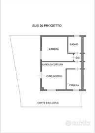 Compreso nella proprietà una corte ed un comodo garage al piano interrato con accesso tramite radiocomando a distanza.