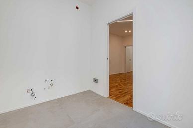 L'appartamento, di circa 75 mq, si presenta con una distribuzione degli spazi razionale e moderna: ingresso su luminoso soggiorno, cucina abitabile separata, disimpegno, bagno finestrato e due camere da letto.