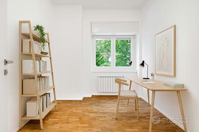 L'intera abitazione è stata oggetto di un'accurata ristrutturazione: pavimentazione in parquet di rovere, infissi in PVC con doppio vetro e tapparelle motorizzate, controsoffitti con illuminazione integrata e un bagno completamente rifatto, dal design contemporaneo e funzionale.