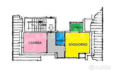 a due passi dal laghetto, appartamento al secondo e ultimo piano, composto da ampio ingresso con armadiature, una camera da letto matrimoniale, soggiorno con cucinino separato da una parete scorrevole e servizio.