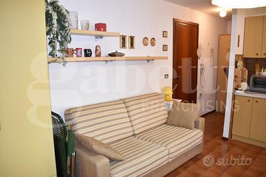 appartamento monolocale composto a ingresso su soggiorno con angolo cottura a vista, divano letto matrimoniale e letto a castello a scomparsa, bagno finestrato con doccia e possibilità di installare lavatrice e ampio terrazzo coperto adatto anche a pranzare fuori nel periodo estivo.