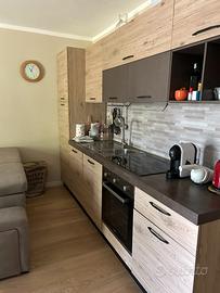 Composto da ampio soggiorno con cucina nuova, piastra induzione, grande divano letto e televisione, cameretta con letto a castello, camera matrimoniale, servizio con lavatrice e box doccia. L'appartamento è molto bello, al piano terra con grande balcone che gira intorno a tutta la casa, si gode di vista panoramica sulle montagne.