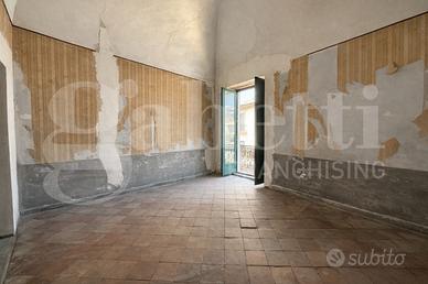 In posizione centralissima, con affaccio diretto sulla rinomata Piazza Vittorio Veneto, proponiamo in vendita un appartamento di 100 mq catastali, inserito in un contesto storico di particolare interesse. L'immobile, da ristrutturare, si caratterizza per la razionale distribuzione degli ambienti interni e per le molteplici potenzialità di valorizzazione, risultando una soluzione di sicuro interesse sia per uso abitativo che per investimento. La composizione interna è la seguente: -Ingresso in ampio salone -Due camere da letto -Cucinino -Bagno La proprietà è arricchita dalla presenza di due ampie balconate e di un terrazzino a livello, elementi che conferiscono luminosità agli ambienti e garantiscono un gradevole affaccio sulla piazza. Elemento distintivo è rappresentato dal doppio ingresso, che consente, previa ristrutturazione, la possibilità di suddividere l'immobile in due unità abitative indipendenti. Le altezze interne con soffitti a cupola offrono inoltre la concreta possibilità di realizzare soppalchi, incrementando la funzionalità e la fruibilità degli spazi. Completa la proprietà una cantina pertinenziale. Si precisa che l'immobile non dispone di box auto o posto auto; tuttavia, vi è la possibilità di locare soluzioni nelle immediate vicinanze. Soluzione ideale per chi desidera investire in un immobile dal fascino storico, ubicato nel pieno centro cittadino, con ampie possibilità di personalizzazione e valorizzazione.