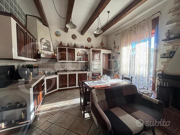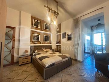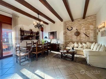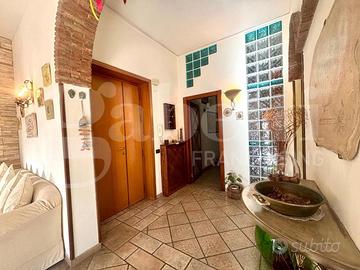 L'immobile è composto da ingresso ampio e luminoso che conduce a un grande salone con cucina open space, arricchito da camino funzionante, stile rustico e cucina in muratura a vista. L'ambiente, di grande impatto e vivibilità, gode di affaccio diretto su Via Martiri d'Ungheria, garantendo ottima luminosità.
