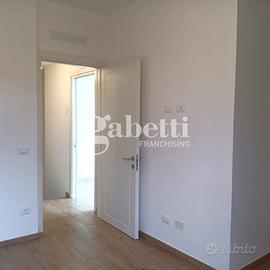 L'Immobile al suo interno risulta composto da una grande sala con angolo cottura in open-space e un primo servizio, mediante una scala interna si arriva al livello superiore dove troviamo un disimpegno e due camere oltre a un secondo servizio ad aspirazione forzata; Passando all'esterno l'immobile risulta corredato da un giardino di circa 25 mq e loggia di 20 mq, completa la proprietà un posto auto coperto.