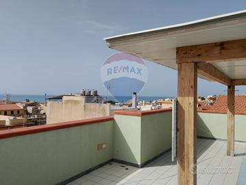 L'immobile, si trova in una posizione tranquilla e riservata, nelle vicinanze ci sono super mercati, bar ,farmacia, pizzerie . Si presenta in buono stato. Con una superficie totale di 112 metri quadrati al piano primo ed un ampio terrazzo al piano 2 di mq 90 circa, l'appartamento si sviluppa su unico livello per un totale di 5,5 locali con cucina spaziosa ed abitabile.