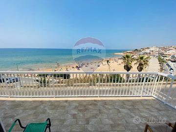 All'interno, troverete una spaziosa cucina, un corridoio che separa i diversi ambienti, quattro camere da letto, tutte con affaccio sul mare, un ampio salone, e due bagni, di cui uno attrezzato come lavanderia. Inoltre, è presente un terrazzo che offre una vista mozzafiato sul mare.
