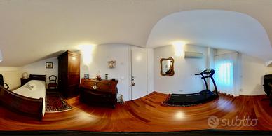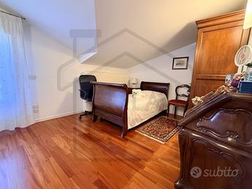 La zona notte, al piano superiore, accoglie tre camere da letto. A servizio del piano troviamo due bagni, uno con box doccia e uno finestrato con vasca idromassaggio, oltre a due ulteriori ripostigli, pensati per garantire ordine e funzionalità.