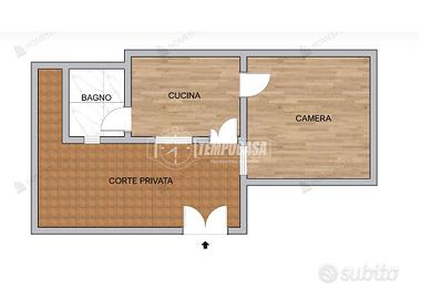 L'immobile è composto da ingresso su cucina abitabile, camera da letto matrimoniale, bagno finestrato con box doccia.