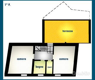 Proponiamo in vendita casa indipendente su due livelli, nel cuore del paese, in zona tranquilla, a due passi da tutti i servizi come negozi di prima necessità, bar, ufficio postale, banca, chiesa ecc. L'ingresso della casa, che attualmente ospita un divano, si apre sul vano scala che conduce al primo piano. Dal suggestivo sottoscala si intravede la cucina, ampia e comoda. Il salottino con finestra ha il camino riconvertito a pellet, la zona pranzo si apre sulla cucina. Dalla stessa cucina si accede al piccolo cortile interno (parzialmente coperto) con la zona lavanderia ed un bagno completo di vasca. Sempre al piano terreno si trova una comoda camera da letto. Al primo piano, oltre al grazioso e soleggiato terrazzino, ci sono altre due camere da letto matrimoniali, il bagno con doccia, ed il ripostiglio.